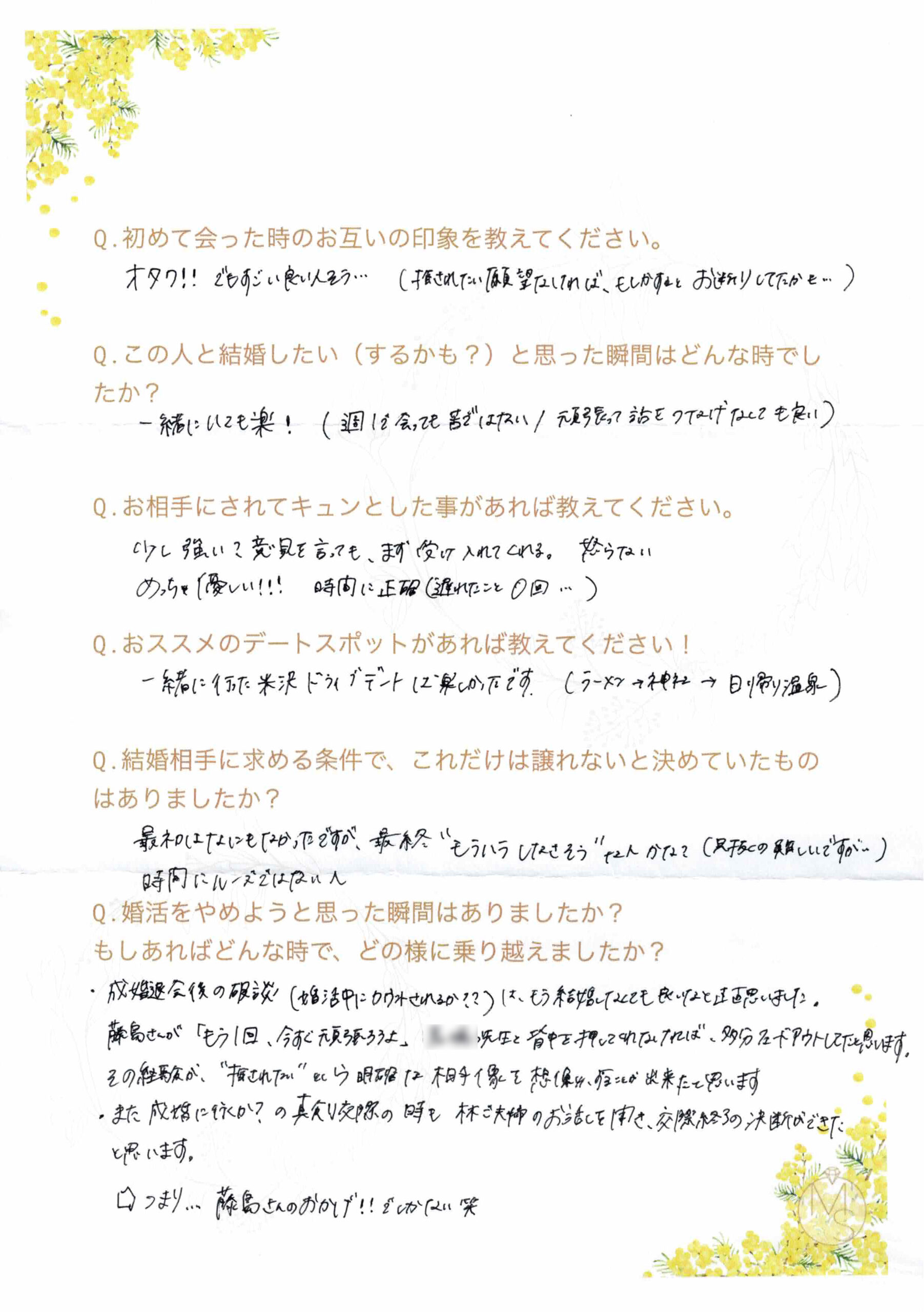 【12/7 NEW】30代会社員の女性会員様からご成婚アンケート☆